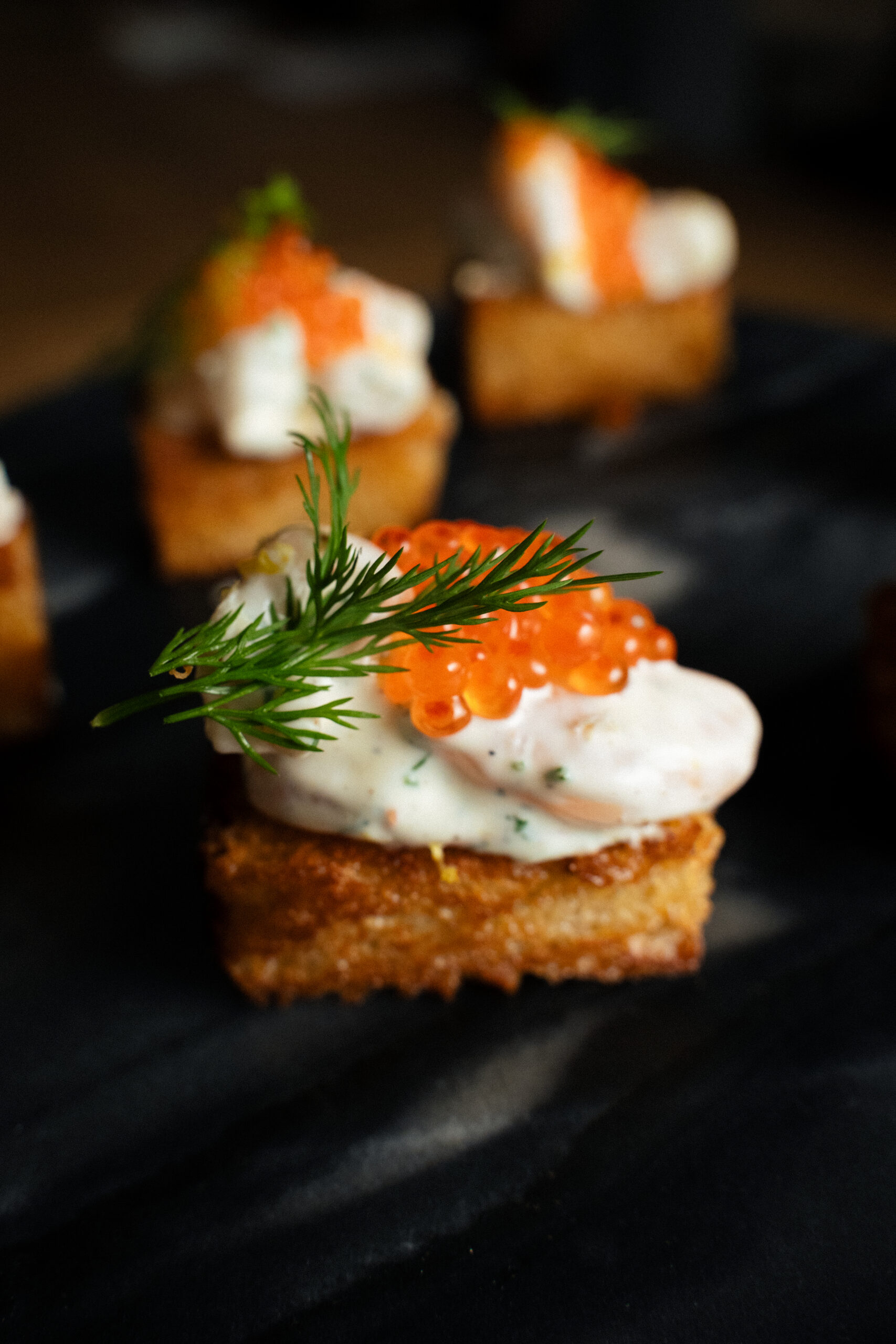 Garneļu skagena salāti ar foreles ikriem un kraukšķīgu maizi